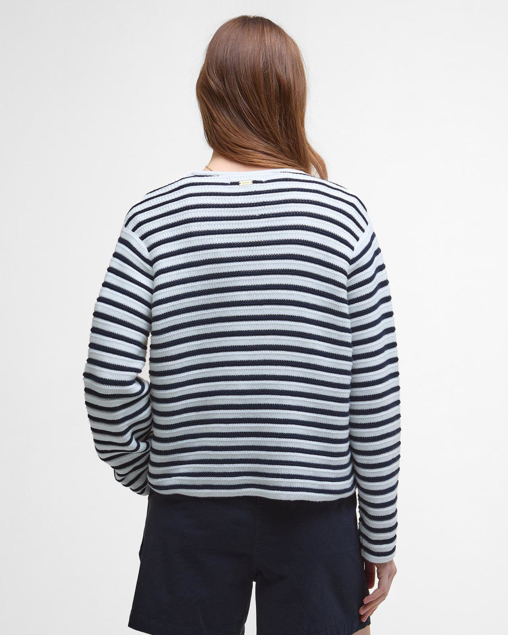 A classic monochromatic stripe will always offer timeless appeal, just like the Barbour Abby Striped Cardigan. Designed to look just as stylish in years to come as it does now, this cosy layer is made from 100% cotton for premium softness. Domed gold-tone buttons and a textured stripe give it a minimal aesthetic, perfect for optimal styling.