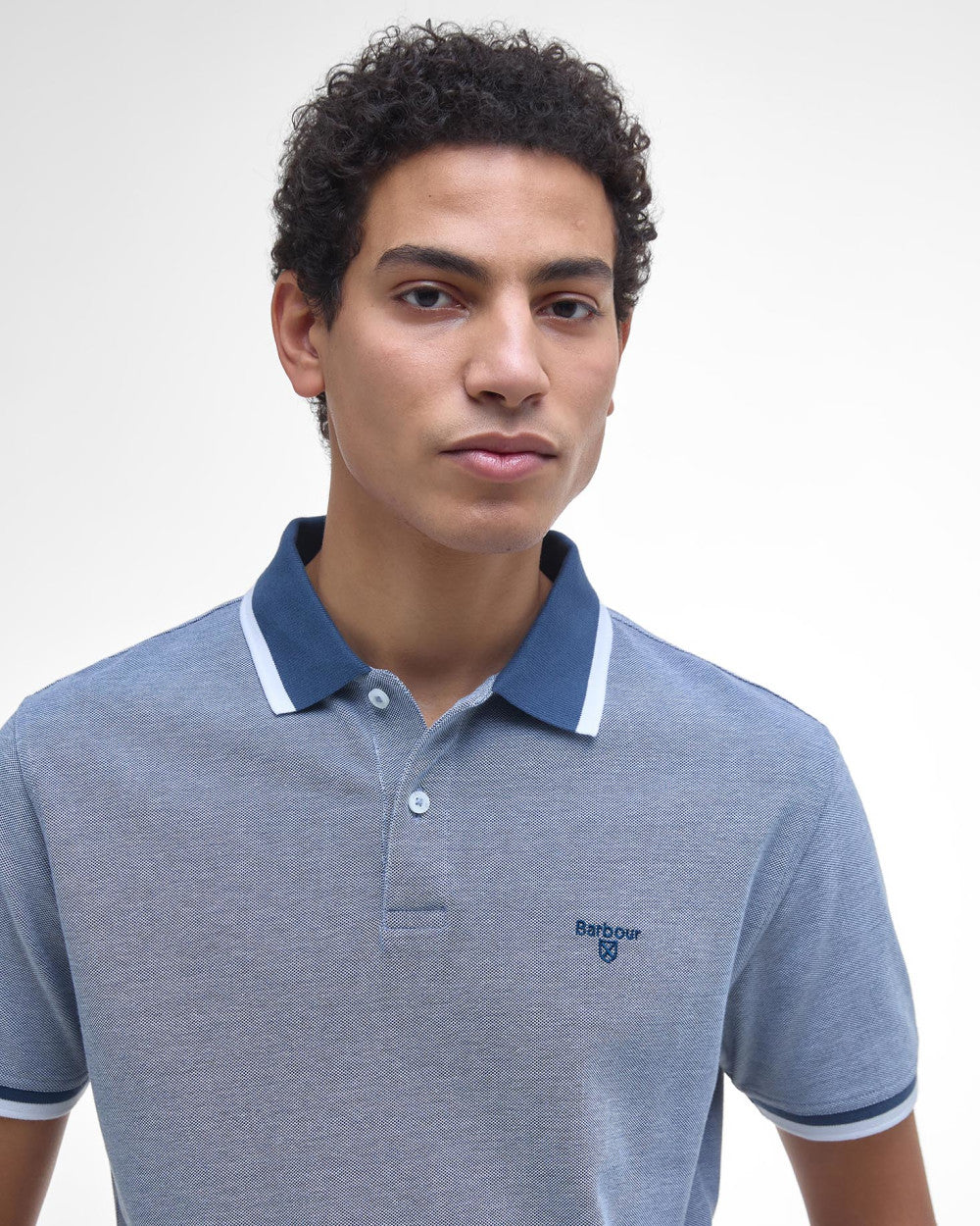The perfect way to upgrade your wardrobe essentials is with the Barbour Barnard polo shirt. Contrasted from two complementing tones of cotton pique, with a coordinating tonal tipped collar and cuffs, this piece offers a stylish look to your smart casual collection. Cut to a tailored fit for a polished profile, it's complete with a tonal embroidered rendition of the Barbour logo and Shield to the chest.