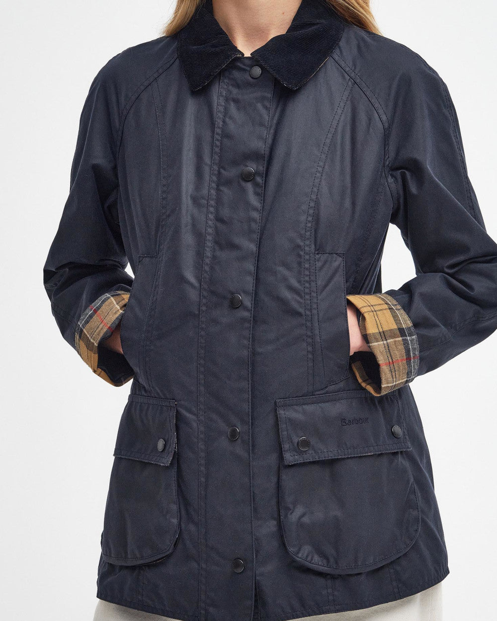 Based on the legendary Bedale but cut to a flattering, feminine silhouette, the Barbour Beadnell Wax Jacket is an iconic style crafted in traditional Thornproof waxed cotton. Boasting a sit-down corduroy collar, classic tartan lining and a wealth of pockets for all your storage needs, several enhancement options are available, including a zip-in liner and a hood, making the Beadnell a versatile, all-season jacket.