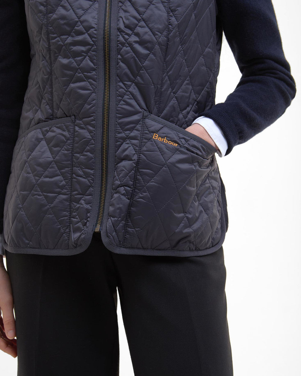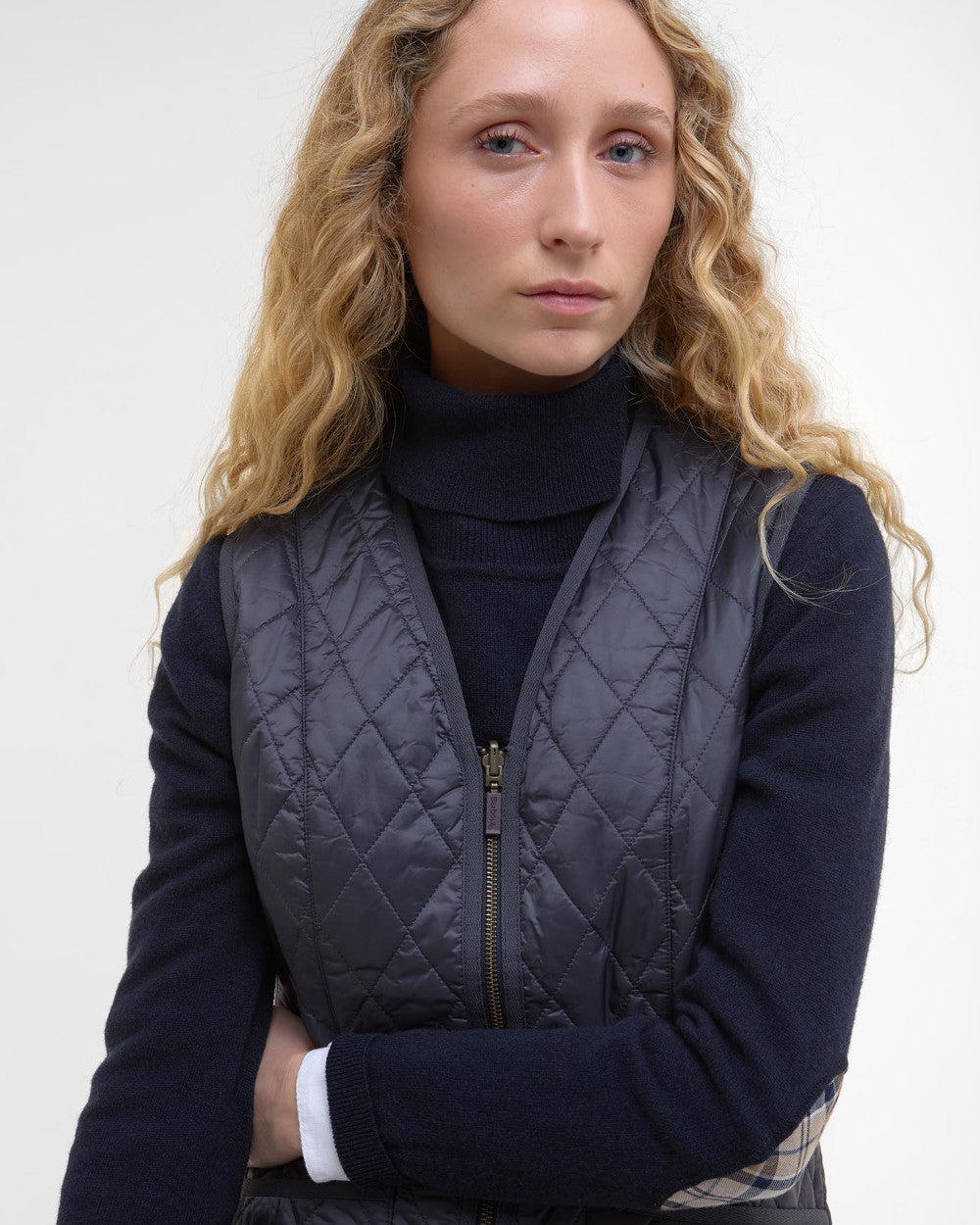 Designed for wearing alone or zipping into a compatible Barbour jacket, the Barbour Betty Interactive Liner is created with a warm diamond-quilted outer. It's simply detailed with tonal grosgrain binding, contrast Barbour embroidery and deep patch pockets.