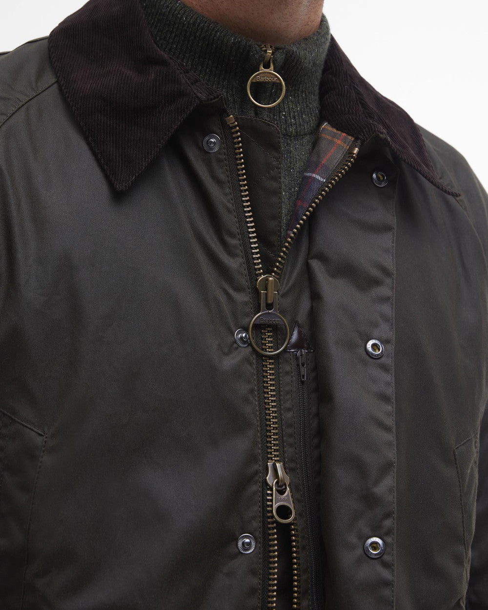In Barbour's 6oz Sylkoil wax for robust protection with a comfortable, lived-in feel, the Bristol is one of Barbour's most popular core jackets. Built to withstand the winter months, this multi-functional jacket men's waxed jacket benefits from a robust two-way zip with storm fly front and stud fastenings to seal out driving wind and rain. The neat sit-down corduroy collar features a stud-fastening throat strap that allows it to be raised for additional protection in bad weather, and two waist-height handwarmer pockets are lined with moleskin for essential warmth and a luxurious feel. Tailored raglan sleeves and a signature Barbour tartan lining add an air of refinement, while two bellow pockets trimmed with tartan and contrast Barbour embroidery provide plenty of room to carry essentials without adding extra bulk. Available in a variety of wearable colours, the interactive Bristol jacket is fully compatible with Barbour's jacket accessories, offering the ultimate year-round versatility.