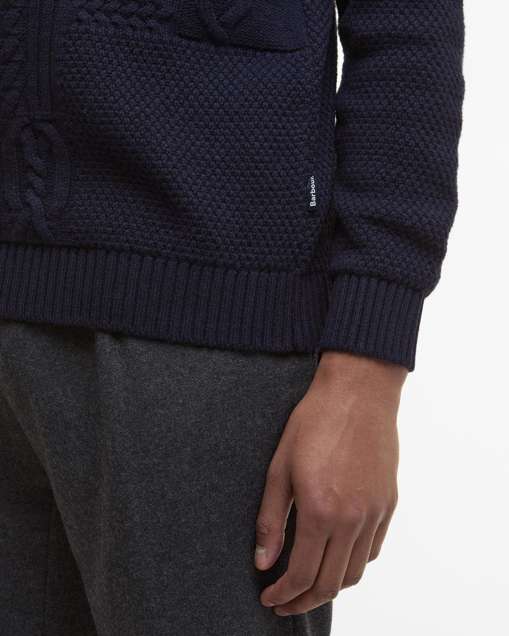 Fusing a mixture of weave techniques for a modern take on classic knitwear, the Barbour Casey Crew Neck Jumper features a patchwork of different cable-knit stitches from back to front for a look of intrigue. Made from a premium wool-cotton blend, it's finished with moss-stitch sleeves and classic crew neckline making it ideal for winter layering.