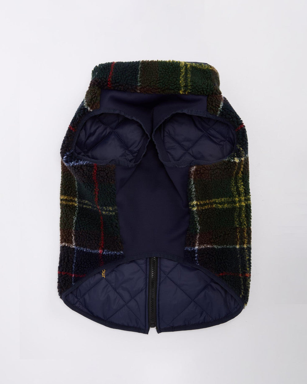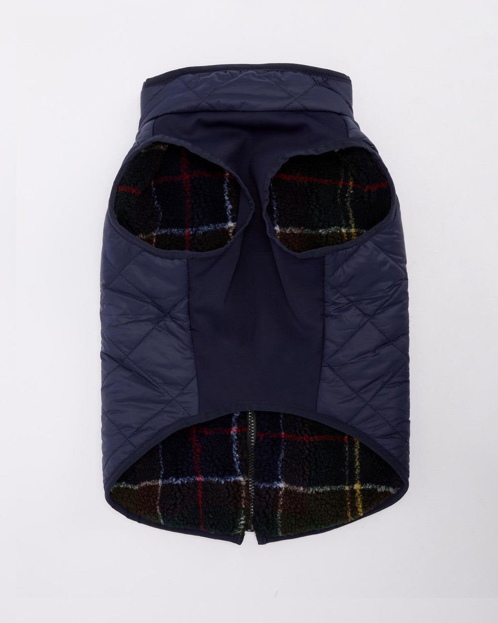 The Barbour Field Reversible Dog Coat boasts a 2-in-1 design with a chunky zip fastening over the back for ease. This reversible dog coat features classic tartan fleecing to one side and our classic quilt to the other, complete with a stretch fabric panel to the front for optimal comfort and easy wear for your little pup.