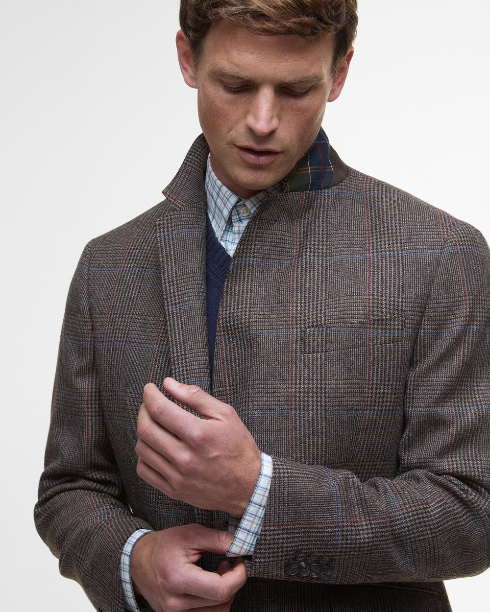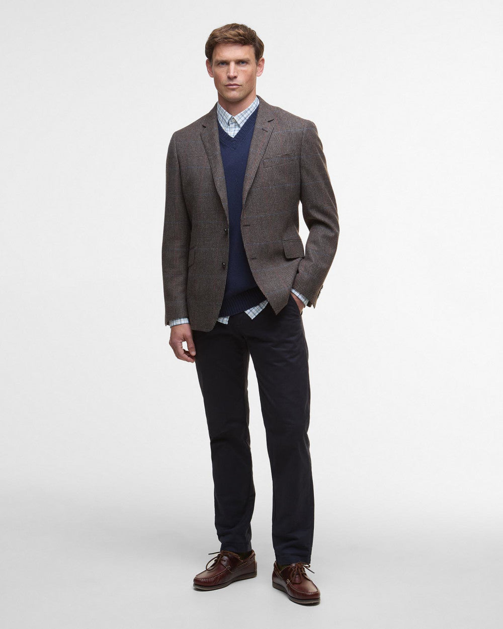 Single breasted blazer in a traditional silhouette with details such as slanted pockets, an eased out waist, double back vents, semi soft sleeve roll to the shoulder and semi notched lapel.