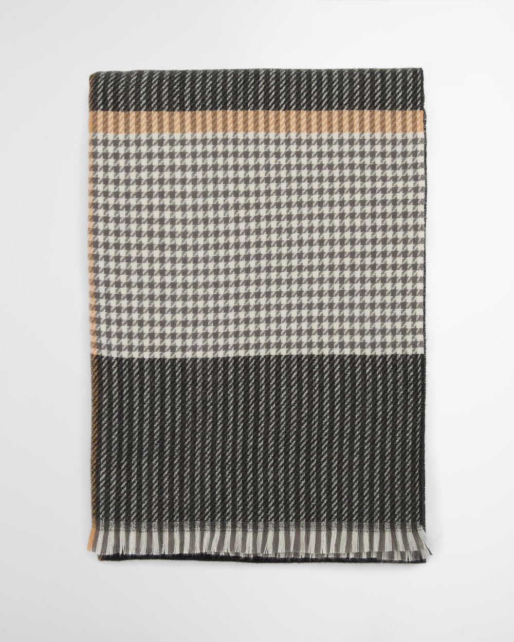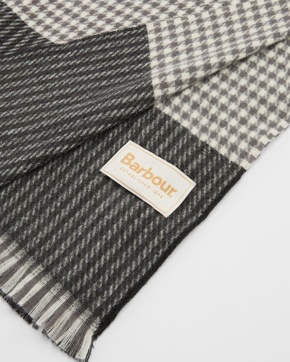 The Barbour Melody Scarf is designed to provide unbeatable warmth in the colder months. It carries an oversized check and is finished with a fringed hem for a touch of texture.