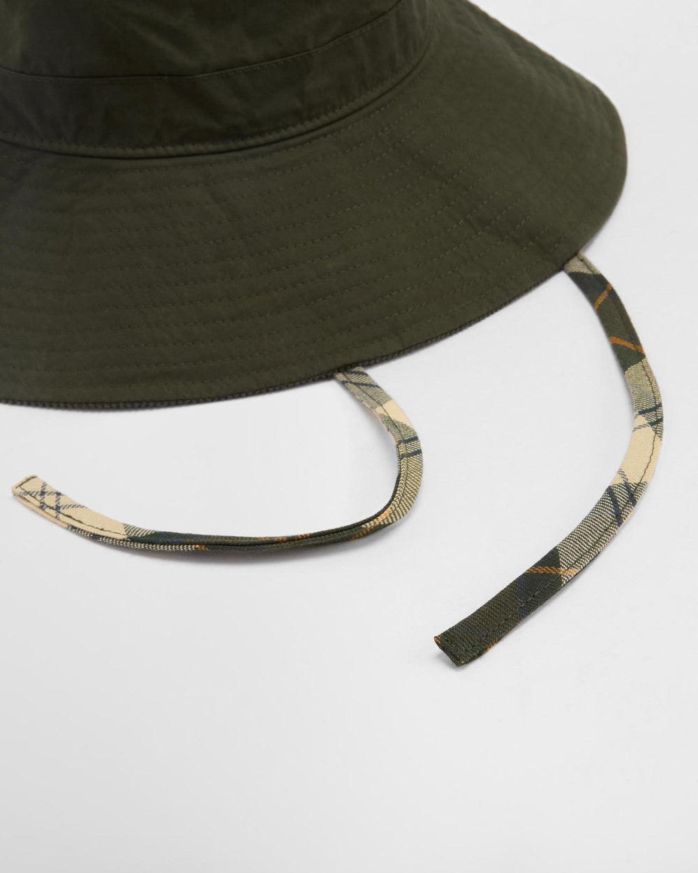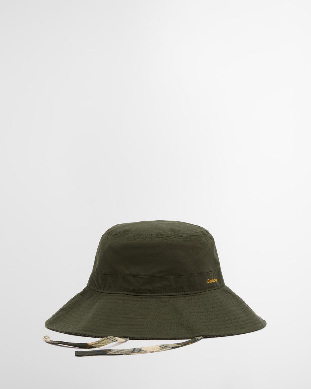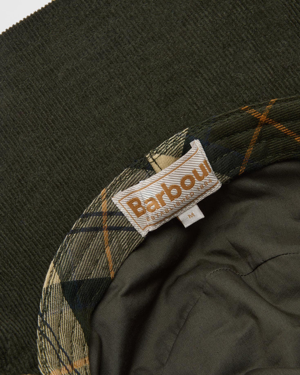 Staple summer styling combines with heritage fabric to create the Barbour Myat Bucket Hat. Crafted from 100% cotton drywax used to create signature Barbour jackets, this practical accessory boasts a tartan trim to the lining and subtle logo embroidery to the side, making it a stylish addition to any look.