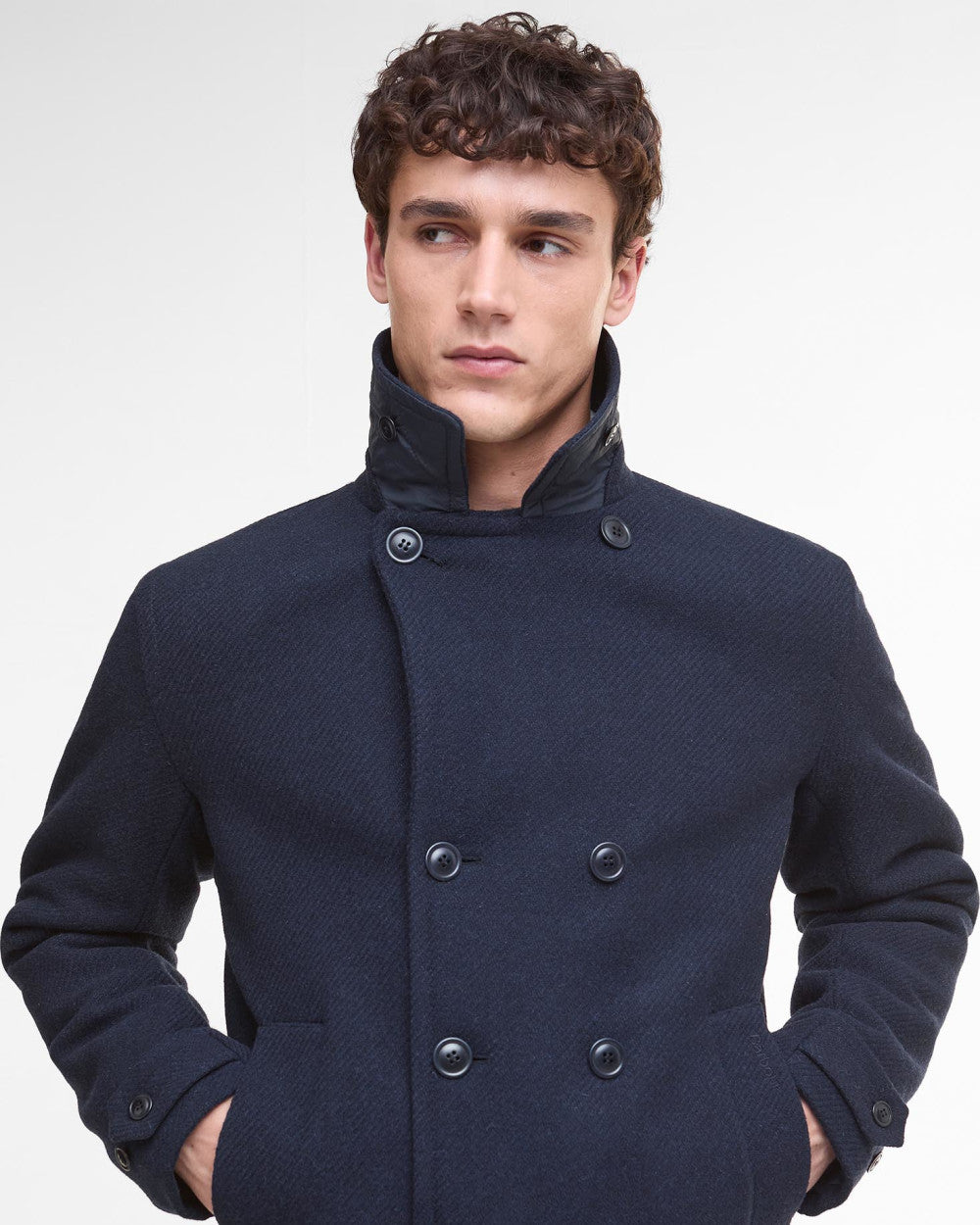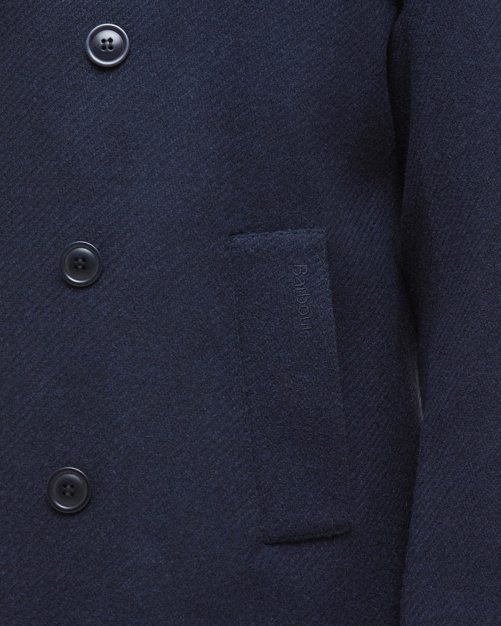 Step into timeless style with the Barbour Newfield Wool Pea Coat, a modern take on a naval classic. Crafted from premium wool, this double-breasted design combines heritage charm with contemporary elegance. It features a refined sit-down collar with a detachable throat guard, a quilted lining for added comfort, and practical lower welt pockets. Built to keep you warm and effortlessly stylish, this coat is made for those ready to embrace every adventure.