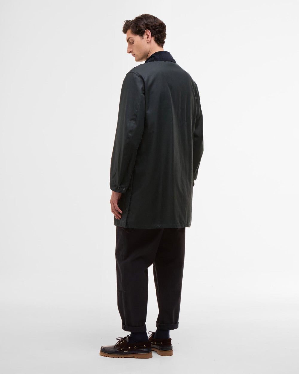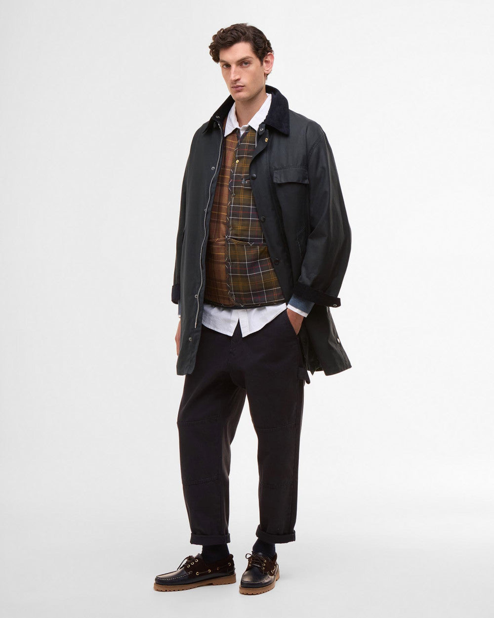 Meet the Beeston Waxed Jacket, where countryside tradition meets contemporary charm. This 8oz Oban wax jacket features Paul Smith-inspired tailoring touches, like a contrast wax three-pocket setup and tartan lining with dripstrip detail, while Barbour’s expertise shines through with its practical moleskin throat tab detail, adjustable cuffs, and side vents. Peek inside and you’ll find the playful cow print pocket lining and a Yves Klein Blue label inspired by a Paul Smith SS12 show ticket. Stylish yet functional, this jacket is designed to turn heads and weather storms.