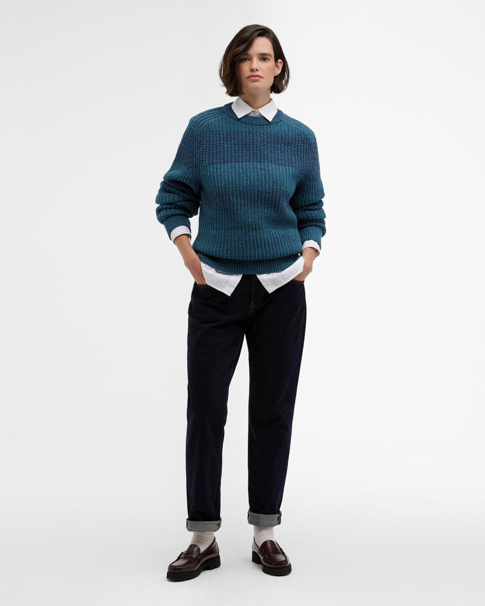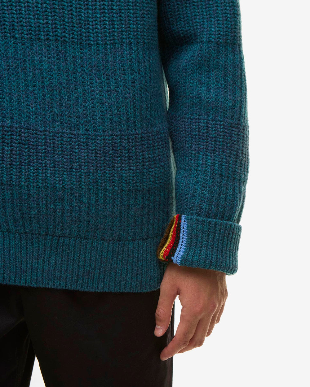 Discover the perfect blend of countryside heritage and contemporary flair with the Paul Smith loves Barbour Saddle Crew Neck Jumper. Crafted from luxurious lambswool twisted yarn, this jumper features a striking textured cardigan stitch stripe, complemented and inspired by Paul Smith's unmistakable signature stripe which peeks from the cuff. This unique collaboration marries Barbour's timeless craftsmanship with Paul Smith's playful sophistication, making it a wardrobe staple and cosy companion to see you through countless seasons. This is British design at its very best.