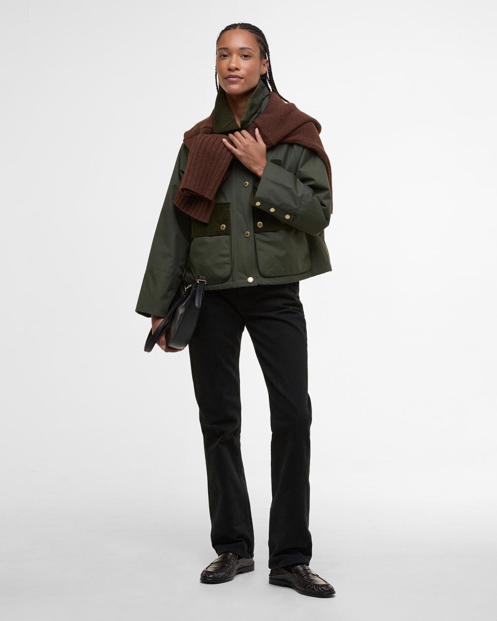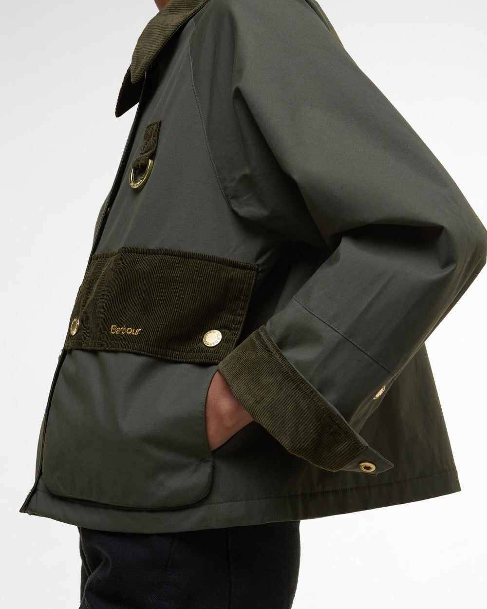 First introduced into the range in 1981, the Barbour Spey Waxed Jacket is one of Barbour's most sought-after silhouettes. Following its discontinuation in 1997, the Spey has been re-introduced into our jacket range in many reiterations, this season, in the form of the Barbour Phoebe Casual Jacket. This season, this archival style is detailed with the signature D-ring tab, synonymous with the Spey, and is finished with deep cuffs and cord trims to the collar and pocket flaps for a contemporary look.
