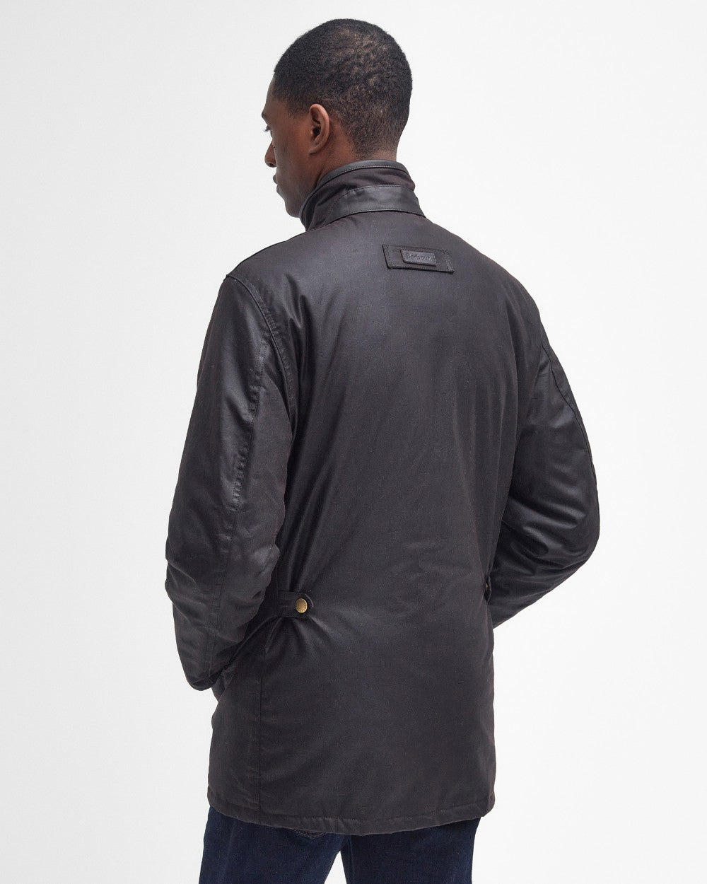 This traditional Barbour wax jacket is constructed with a 6oz Sylkoil waxed cotton outer and a warm box-quilted lining. Angled pockets fasten with stud-close flaps to keep essentials safe and secure.