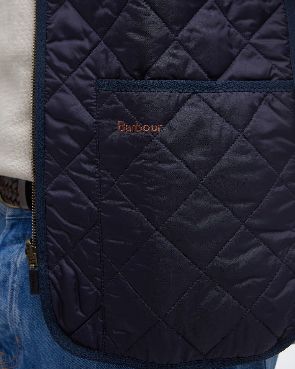In Barbour's signature diamond quilted nylon, this versatile waistcoat can be zipped into interactive Barbour jackets or simply worn alone. Features an authentic tartan lining and generous patch pockets.