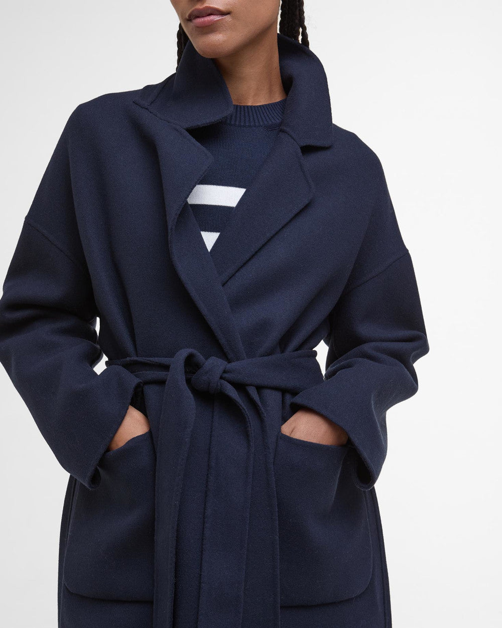 Upgrade your smart-casual wardrobe with the sophisticated Barbour Rachel Wool Wrap Coat. Crafted from a double-faced wool, this classic style features a belted waist and fabric covered button fastening, allowing you to cinch in the waist and lock in the warmth in the cooler weather.