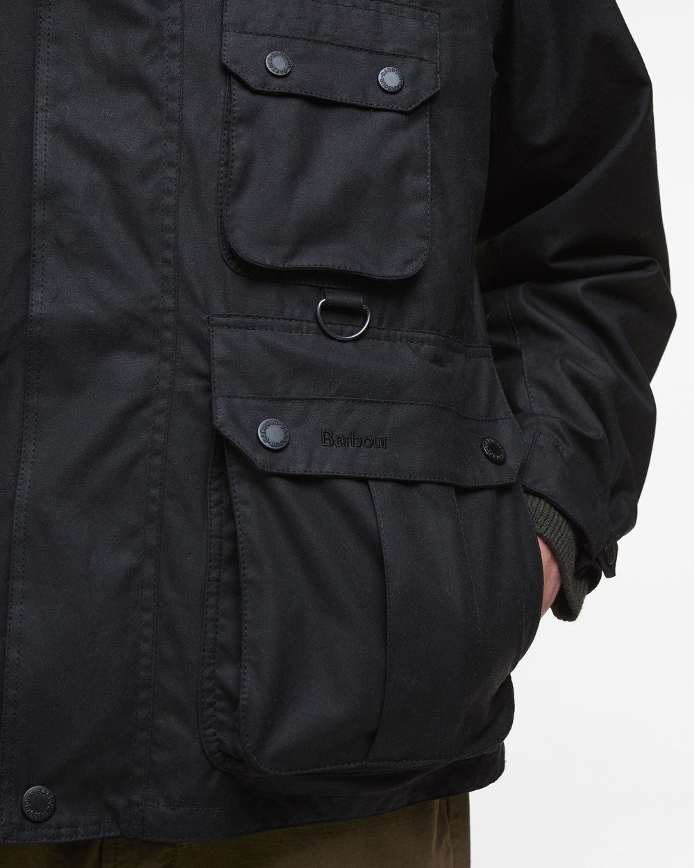 Experience the Barbour Re-Engineered Utility Bedale Waxed Jacket, a true reflection of Barbour's craftsmanship. With over a century of heritage behind it, this 6oz wax jacket embodies Barbour's legacy of timeless style and rugged durability. Oversized bellow pockets, inspired by classic outdoor pursuits, keep essentials within reach, while the chest pocket with D-ring nods to the brand's roots. The cord-lined collar, a hallmark of Barbour design, offers both comfort and tradition.