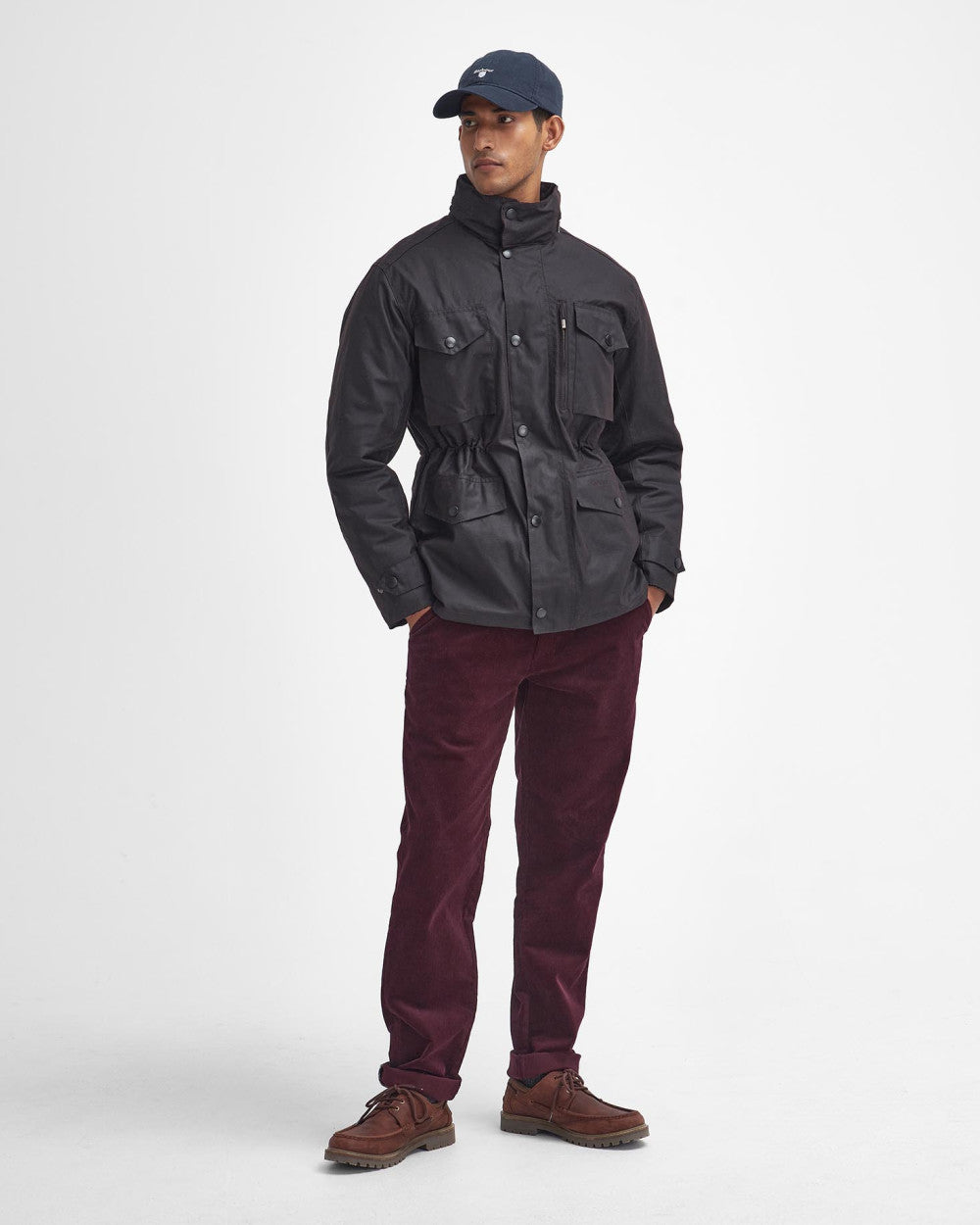 This subtly tailored version of Barbour's popular Sapper Jacket blends rugged functionality with an effortlessly smart look. It's made from lighter-weight Sylkoil waxed cotton and features a drawcord waist, four outer pockets and a stowaway waterproof hood.