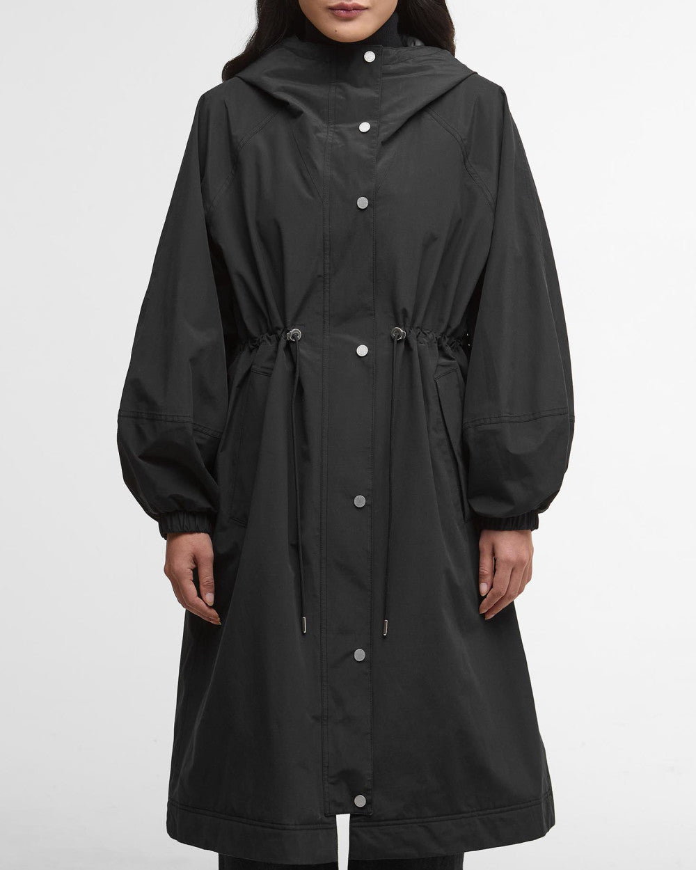 Come rain or shine, Barbour has you covered with the Barbour Sidney Waterproof Parka. This longer length design is perfect for unpredictable weather, thanks to its hood, elasticated cuffs and drawcord to the waist for added protection.