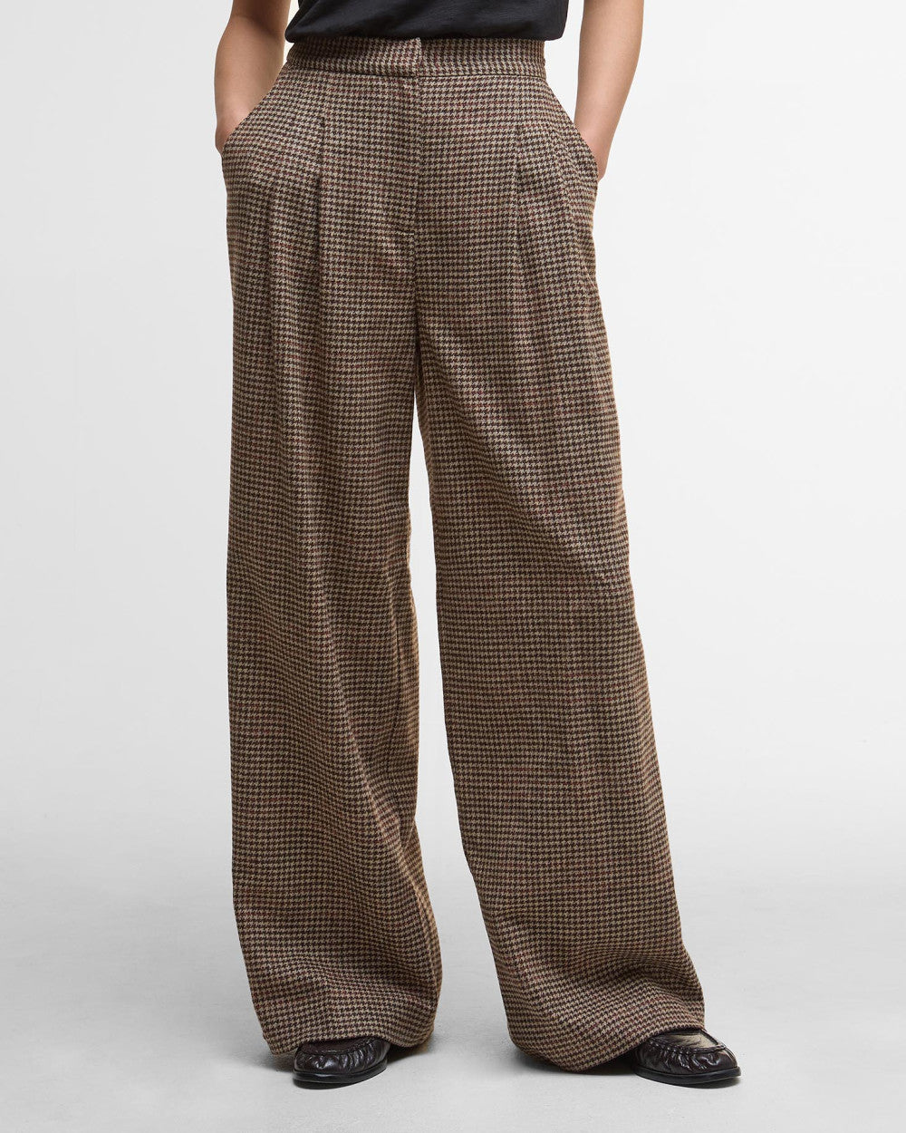The Barbour Sophia Wool Tailored Trousers effortlessly combine everyday comfort with sophisticated style. Made from soft merino wool, these straight-leg trousers are designed with elegant pleats for a sophisticated finish. Thoughtful details include convenient side pockets, sleek welt pockets at the back, and branded dome buttons for a polished touch. The result? A perfect blend of practicality and elegance, making them ideal for navigating your day with ease and style.