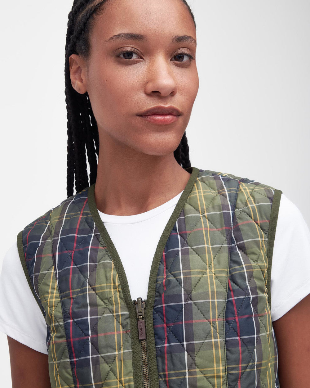 Compatible with interactive Barbour jackets, this diamond-quilted liner carries iconic tartan and is detailed with deep patch pockets, contrast Barbour embroidery and grosgrain binding to the edges.