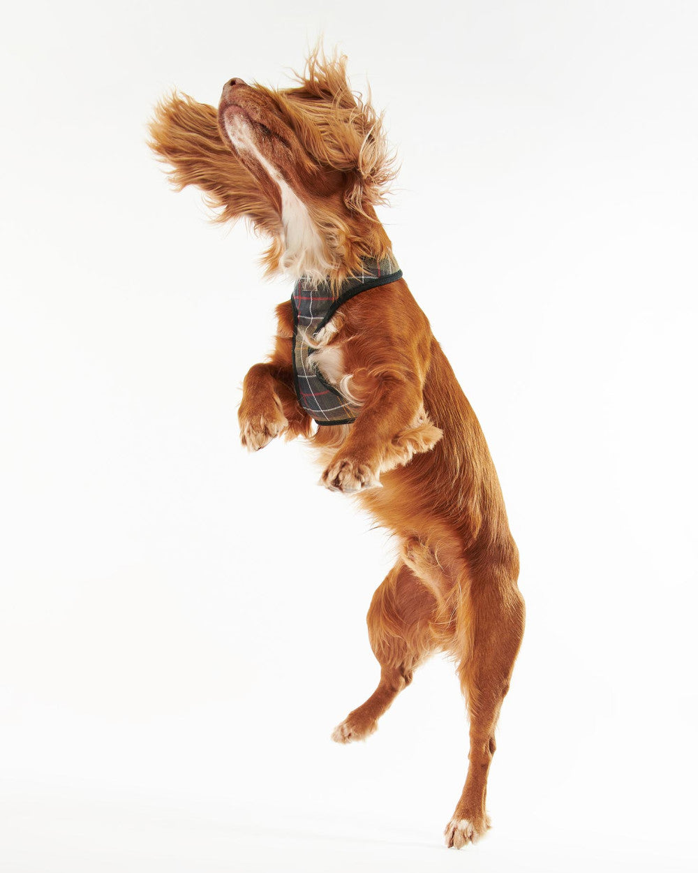 With an adjustable chest strap and cushioning for maximum comfort, this dog harness features Barbour's elegant house tartan and a metal D ring for attaching to leads.