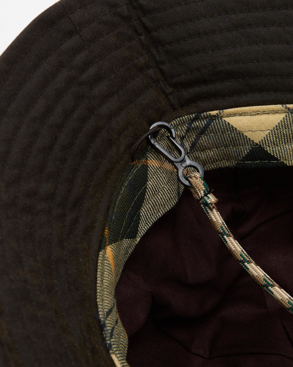 Inspired by utilitarian silhouettes, the Barbour Transport Domed Bucket Hat has been crafted in an all-over cotton dry wax fabric. Detailed with a contrasting embroidered logo, removable patterned cord chin strap and internal Barbour tartan trim, giving this timeless style a signature Barbour finish.