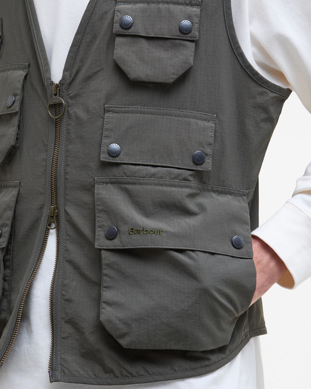 The Barbour Utility Editor Casual Vest is inspired by archival designs of the past but made for today. This casual utility vest is detailed with a multitude of pockets and D-ring details inspired by our roots, dressing everyone from shipbuilders to farmers of the North-East.
