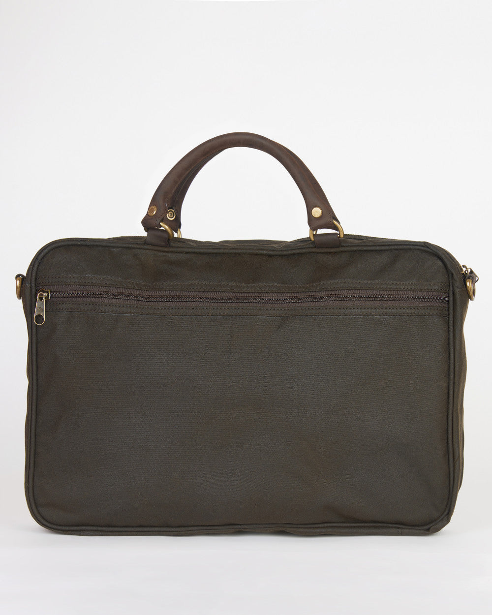 Combining business-ready functionality with Barbour's signature waxed finish, the Wax Leather Briefcase is a robust commuting companion. This laptop-sized briefcase is crafted with a waxed cotton and antique brass hardware. The cotton lining in Barbour's iconic Classic Tartan adds unmistakable authenticity, while two leather carry handles are complemented by a detachable webbing shoulder strap for extra practicality.